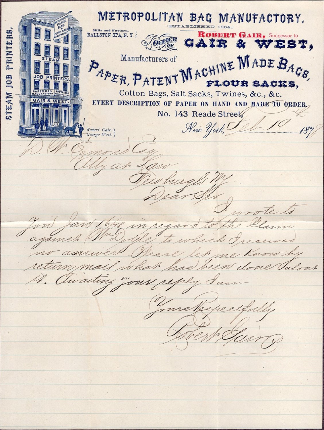 advertising cover for Robert Gair picturing his NYC "Paper Bag and