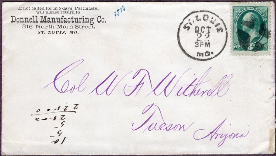 intact Donnell Manufacturing Co. corner advertising envelope with