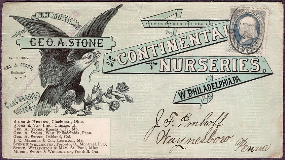 advertisement for GEO. A. STONE CONTINENTAL NURSERIES, W. PHILADELPHI, PA. Cover pictures an