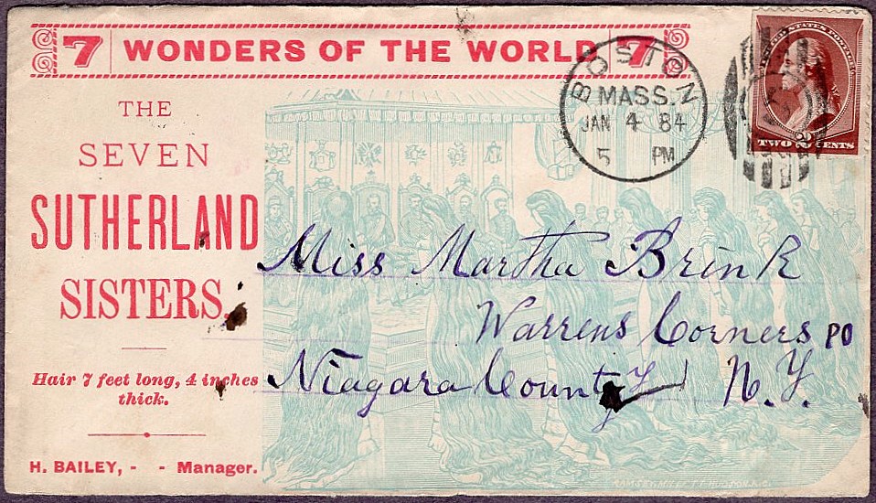 envelope for The Seven Sutherland Sisters. The sisters performed as