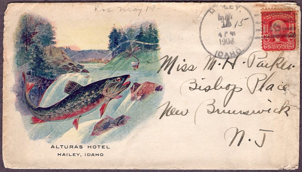 postmark on intact multicolor advertisement for Alturas Hotel,