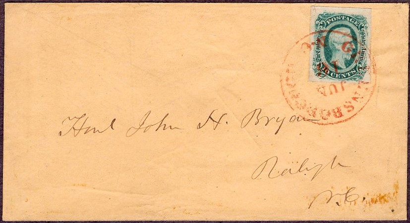 light buff cover to Raleigh N.C. Extremely fine and attractive. |
