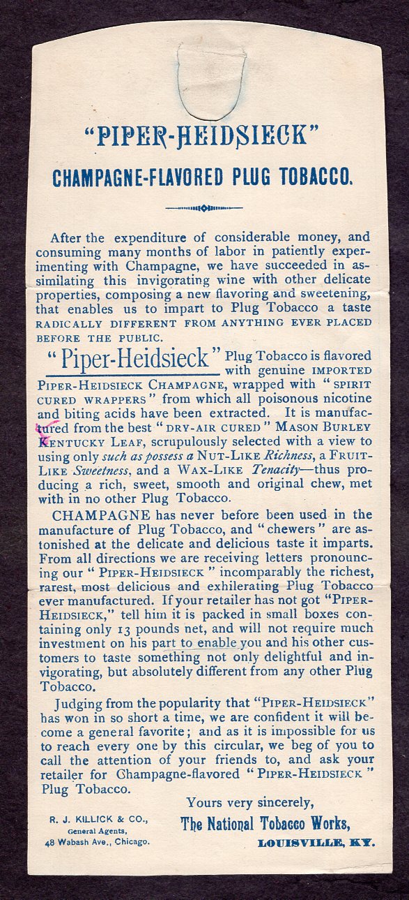 glue, flap tuck) for Piper Heidsieck champagne-flavored plug