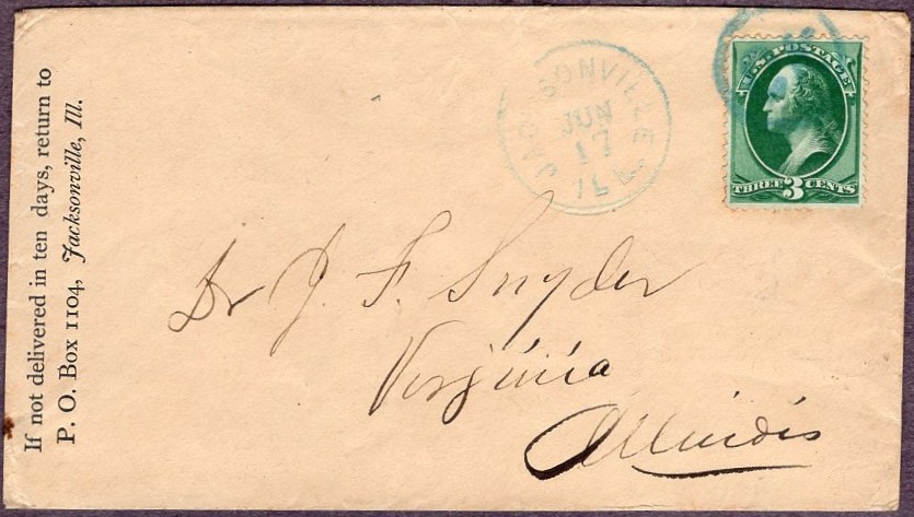 JACKSONVILLE, ILL. JUN 17 postmark (Morgan County, 1825/-) and matching