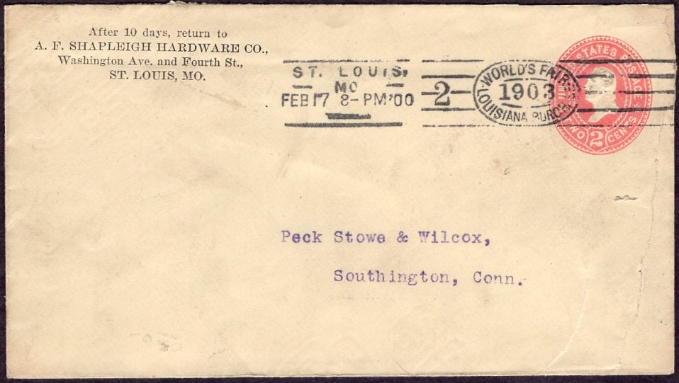 strike of ST. LOUIS, MO. NOV 24 1904 EXPOSITION STA machine postmark on exposition