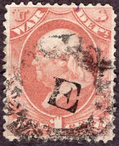 #O116, fine, sound 3¢ War soft paper, canceled by a VF+