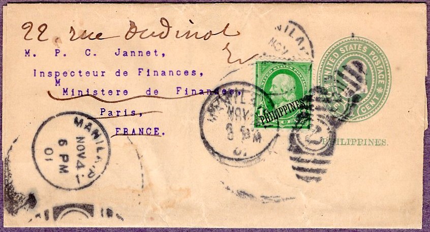 uprated with #213 1¢ overprint, bearing three strikes of MANILLA P.I.