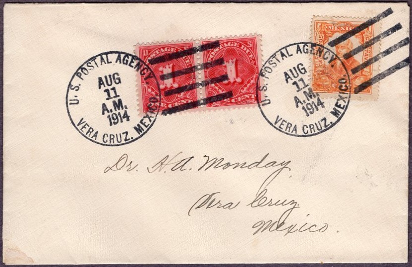 strike of "U.S. POSTAL AGENCY. VERA CRUZ. MEXICO AUG 11 A.M. 1914" rubber