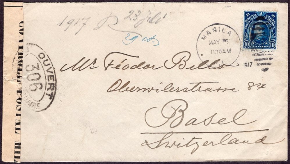 intact Bureau of Internal Revenue cover, MANILLA, P.I. JUN 3 1908