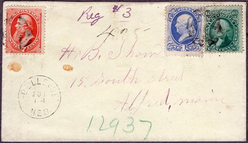 NEB. JUL 14" postmark on intact registered cover to Alfred Me.,
