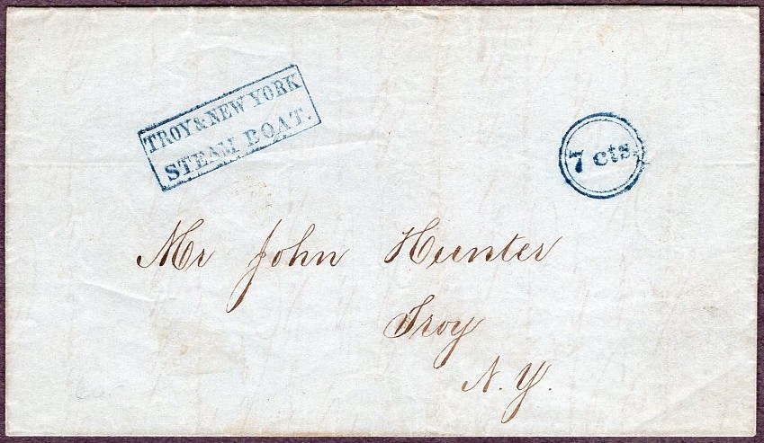 strikes of blue boxed "TROY & NEW YORK / STEAM BOAT" with