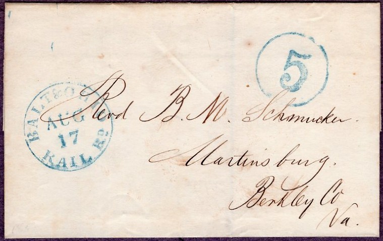 drop rate with blue PROVIDENCE R.I. AUG 13 [1851] postmark and bold
