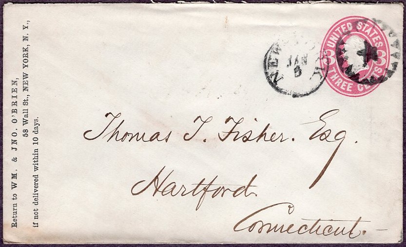 #U58, VF intact 3c pink on white entire, canceled by an XF