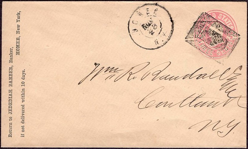 #U59, XF intact entire with double ring HOMER N.Y. NOV 23